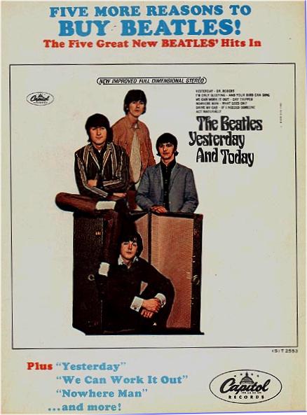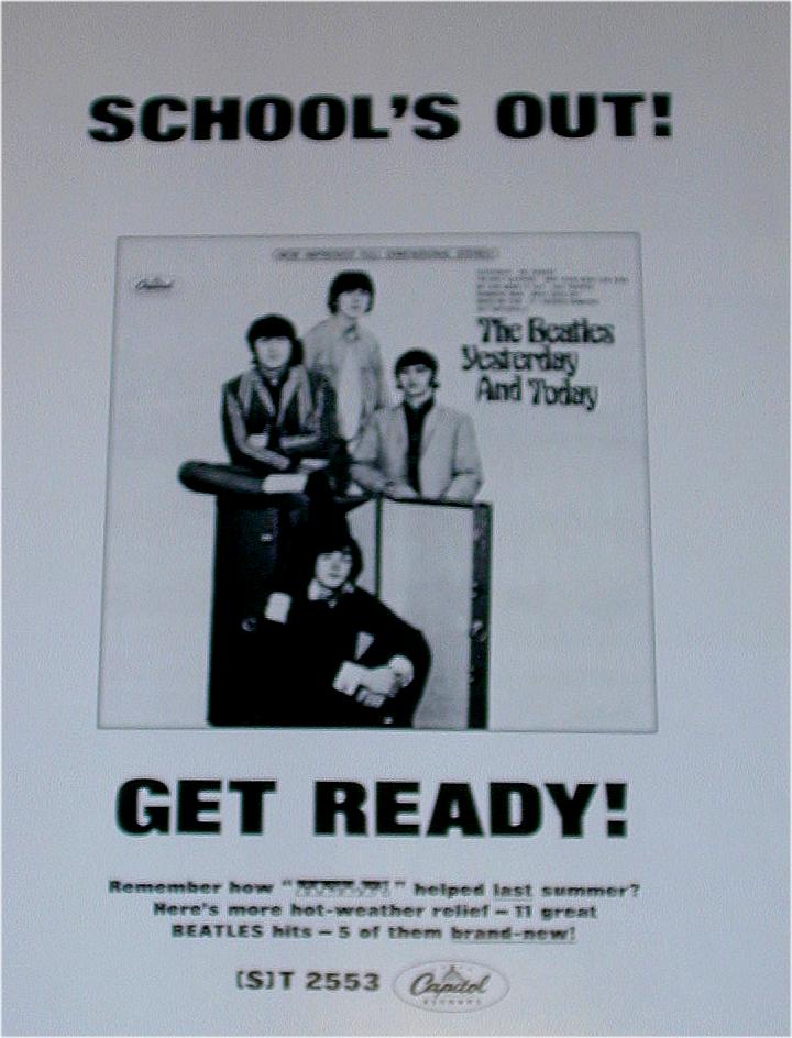 June 25, 1966 - Capitol Records presented a full page ad in Billboard and Cash Box Magazine promoting the new LP The Beatles Yesterday And Today. There are 2 versions of this advertisement with the larger Billboard and Cash Box one in b/w and a smaller 8.5" x 11" full-color version which ran in the June 1966 issue of Teenset Magazine.