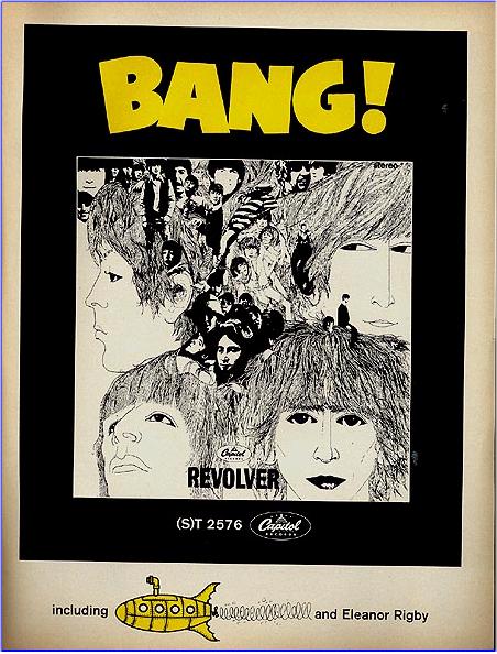 August 20, 1966 - Capitol Records presented a full page ad in Billboard Magazine promoting the new album Revolver. This was a full color advertisement. A large poster with the exact graphics was also made; see the record promo poster section for details on that item. This same ad also ran in the December 1966 issue of Teenset magazine. The second Ad shown was another full page color ad made to promote the release of Revolver which was published in the August 1966 issue of Teenset Magazine.