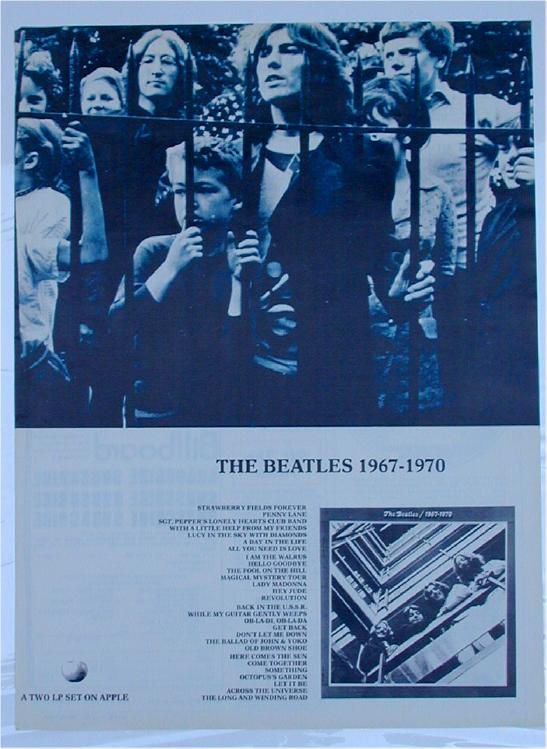 April 1973 - Apple Records presented a full page ad in Billboard Magazine promoting the new album The Beatles 1967-1970..