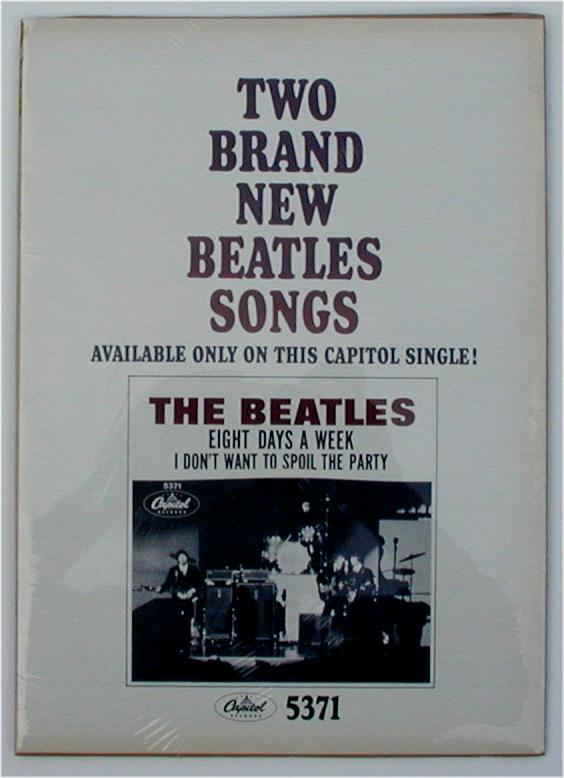 February 13, 1965 - Capitol Records presented a full page ad in Billboard Magazine promoting the single Eight Days A Week and features a b/w photo of the 45 picture sleeve.
