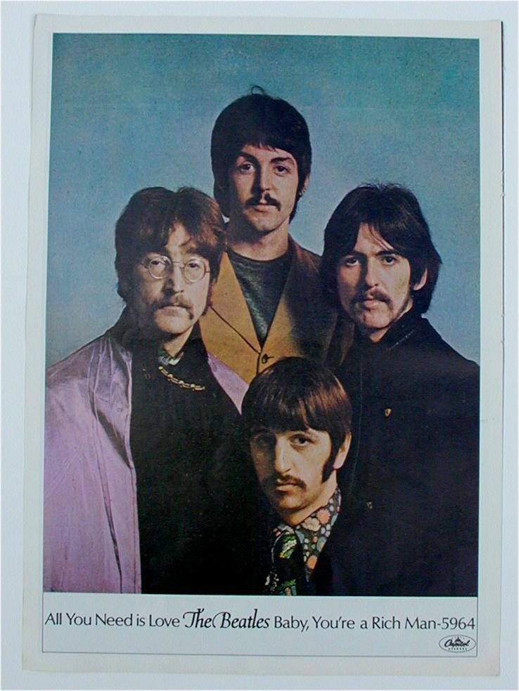 June 29, 1967 - Capitol Records presented a full page ad in Billboard Magazine promoting the single All You Need Is Love. This was a full color advertisement that was also made into a poster; see the Promo Poster Section for details on that poster.