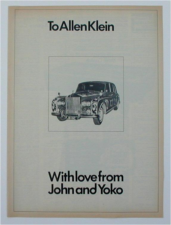 March 1971 - A very interesting Apple Records ad in Billboard Magazine from John and Yoko.