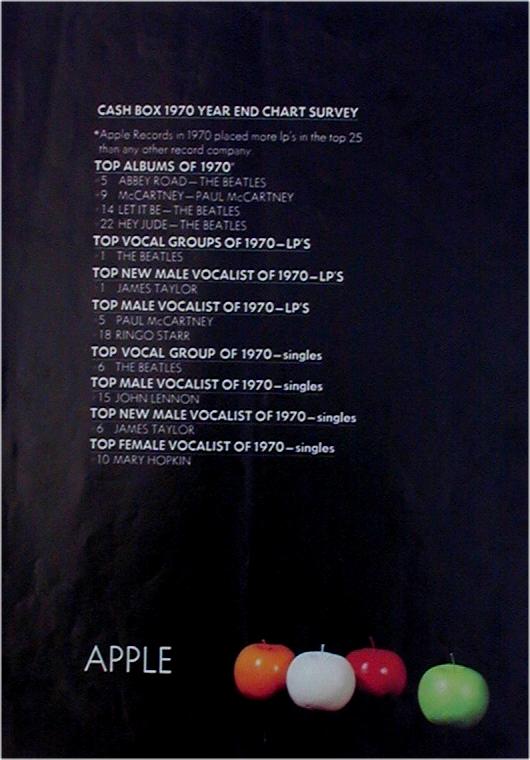 December 1970 - Apple Records presented this very interesting full page ad in Cash Box Magazine at year end 1970.