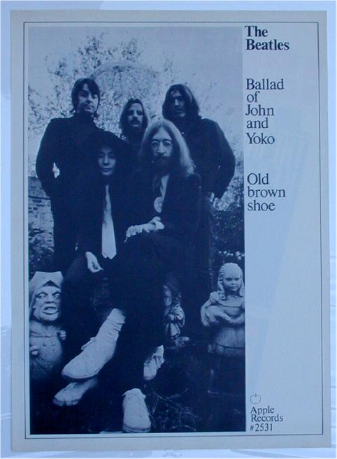 June 14, 1969 - Apple Records presented a full page ad in Billboard Magazine promoting the new Beatles single The Ballad of John and Yoko. This advertisement used the same photograph as the 45 picture sleeve.