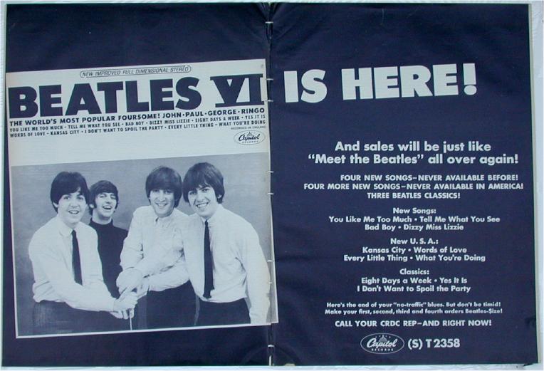 June 5, 1965 - Capitol Records presented a 2 page b/w ad in Billboard Magazine promoting the new LP Beatles VI.