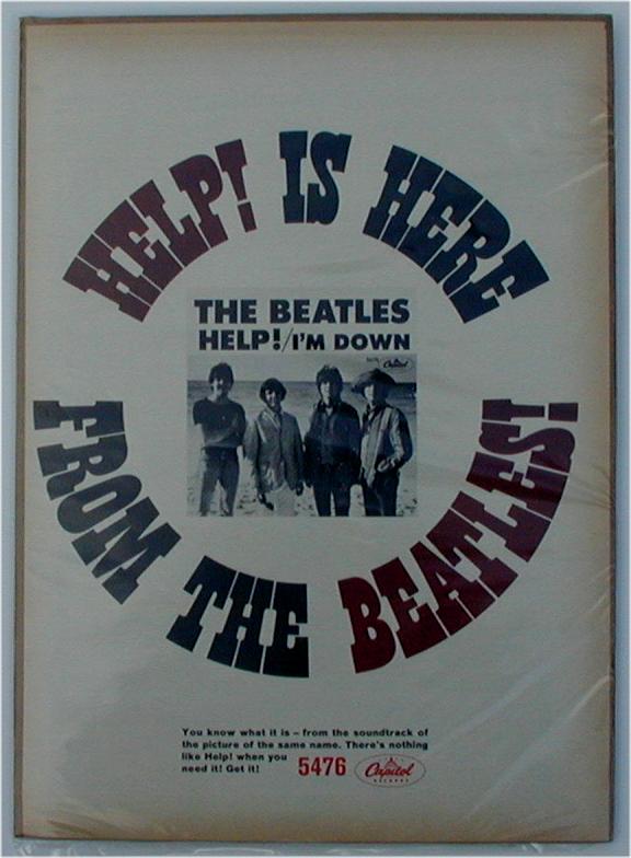July 24, 1965 - Capitol Records presented a full page ad in Billboard Magazine promoting the single HELP!. A b/w picture of the 45 picture sleeve is pictured in the center of the ad.