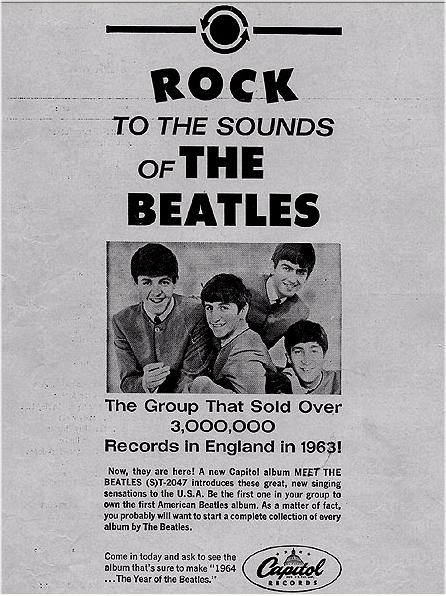January, 1964 - Capitol Records presented this ad promoting the new LP Meet The Beatles!