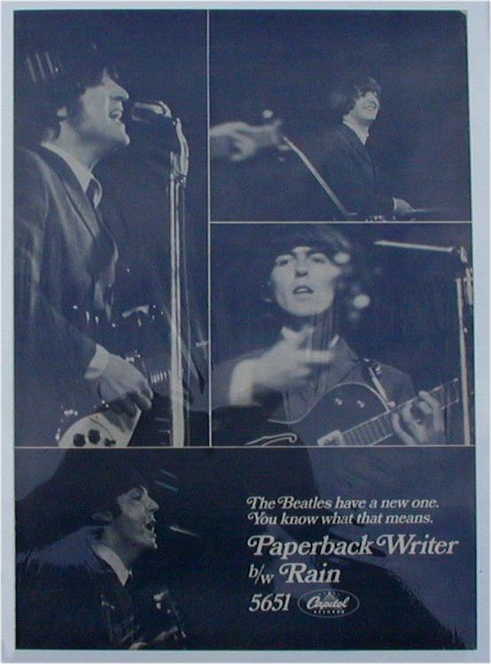 June 4, 1966 - Capitol Records presented a full page ad in Billboard Magazine promoting the new single Paperback Writer. This was a b/w advertisement.