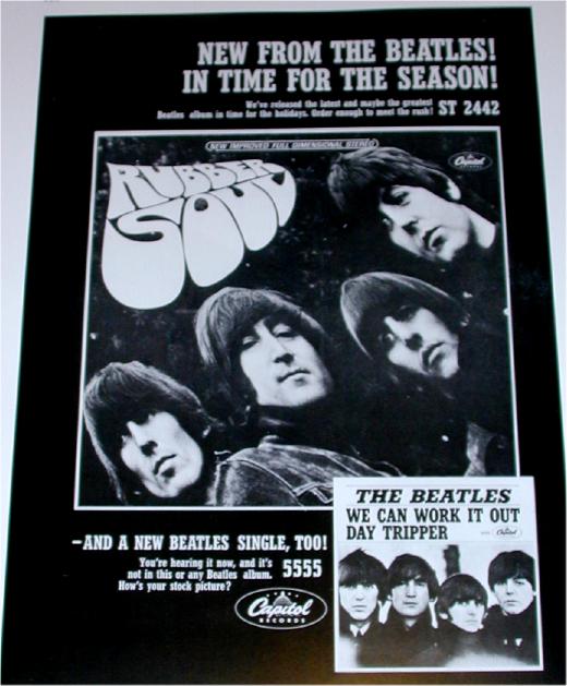 December 1965 - Capitol Records presented a full page color ad in Capitol's Teenset Magazine promoting the LP Rubber Soul.