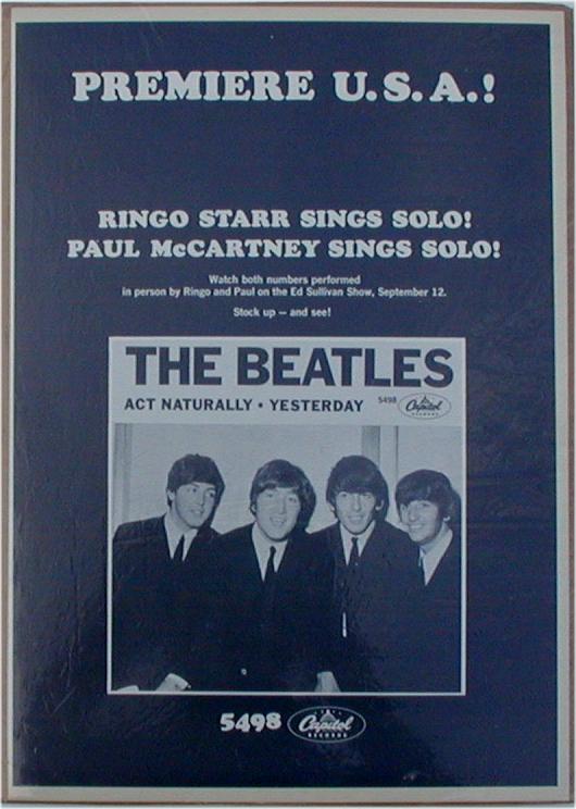 September 11, 1965 - Capitol Records presented a full page ad in Billboard Magazine promoting the single Yesterday. This was a b/w advertisement.