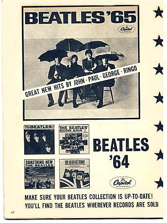 June 1965 - Capitol Records presented a full page b/w ad in the June issue of Teenset Magazine promoting the new LP Beatles '65.