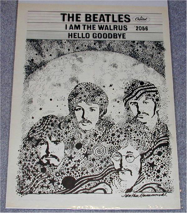 November 25, 1967 - Capitol Records presented a full page 11"x 15" ad in Billboard Magazine promoting the new Capitol single I Am The Walrus. This was a b/w advertisement with very cool graphics.