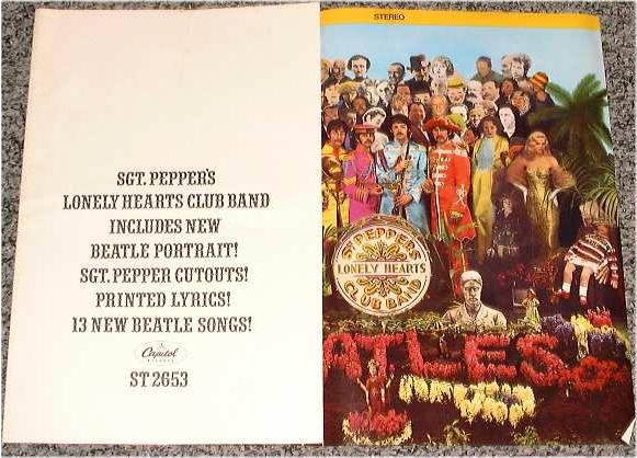 June 3 and June 7, 1967 - Capitol Records presented a 13" x 25" tri-fold insert poster in Billboard and Cash Box Magazine respectively promoting the LP Sgt. Pepper's Lonely Hearts Club Band. The ad has a full Capitol Records Sgt. Pepper LP front and back slick on one side. The other side advertises the LP with 'ST-2653' which was incorrect as the actual album number used was SMAS-2653.