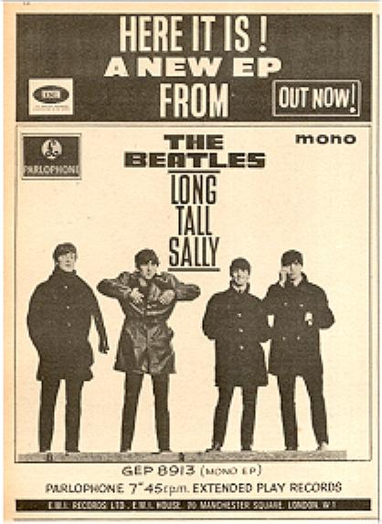 June 19, 1964 was the release date of The Beatles Long Tall Sally Parlophone EP released in the UK. This great full page AD probably came out of Music Echo Magazine or another music trade magazine from the time.