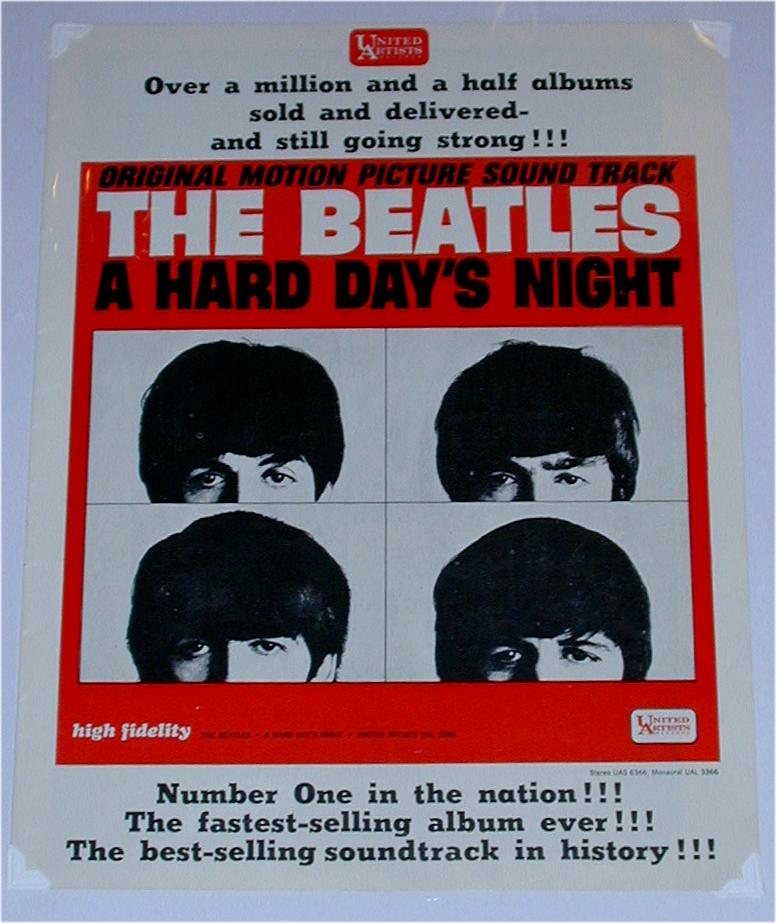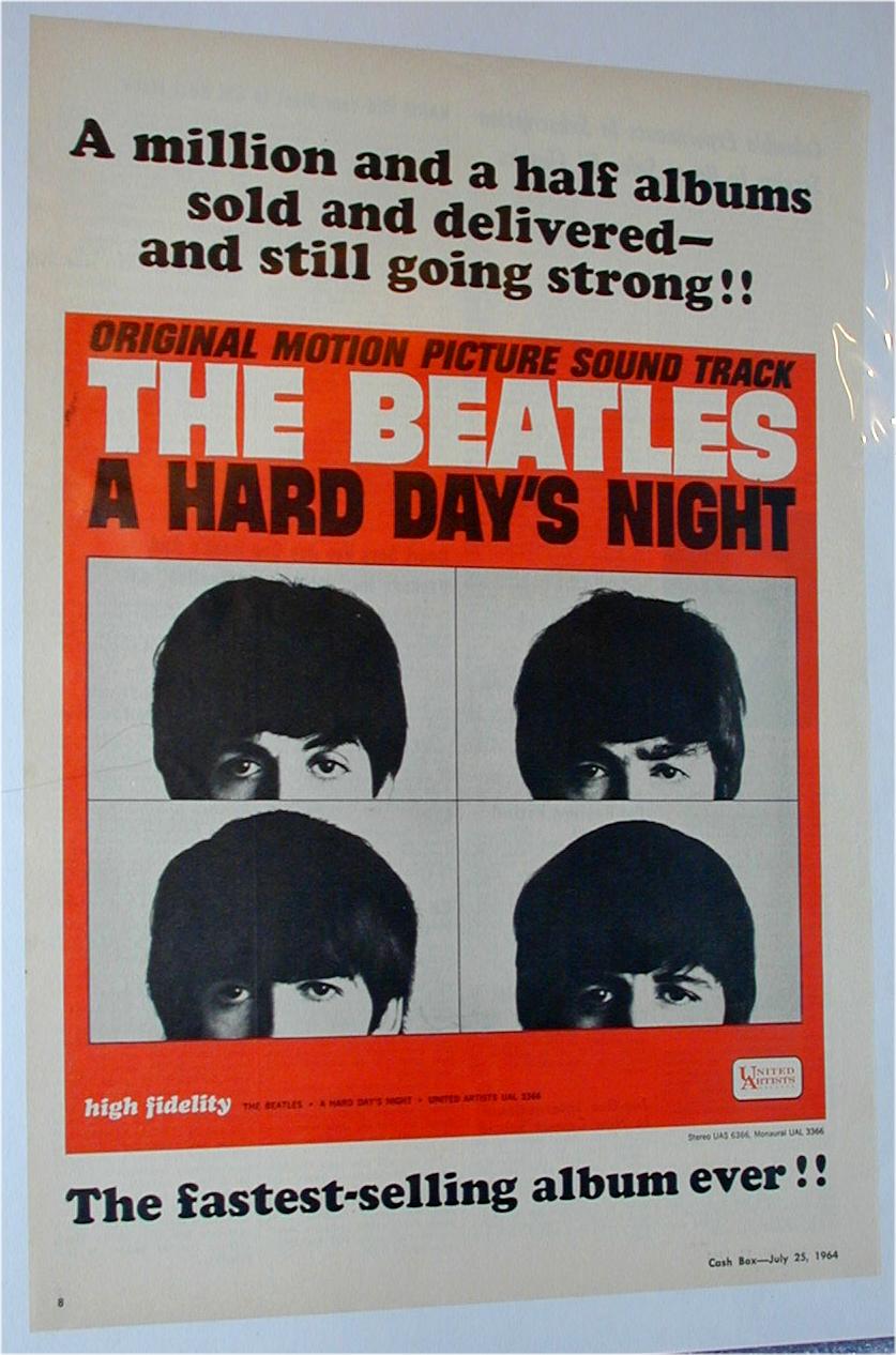 October 17, 1964 - United Artists presented a full page Ad in Billboard Magazine promoting A Hard Days Night.