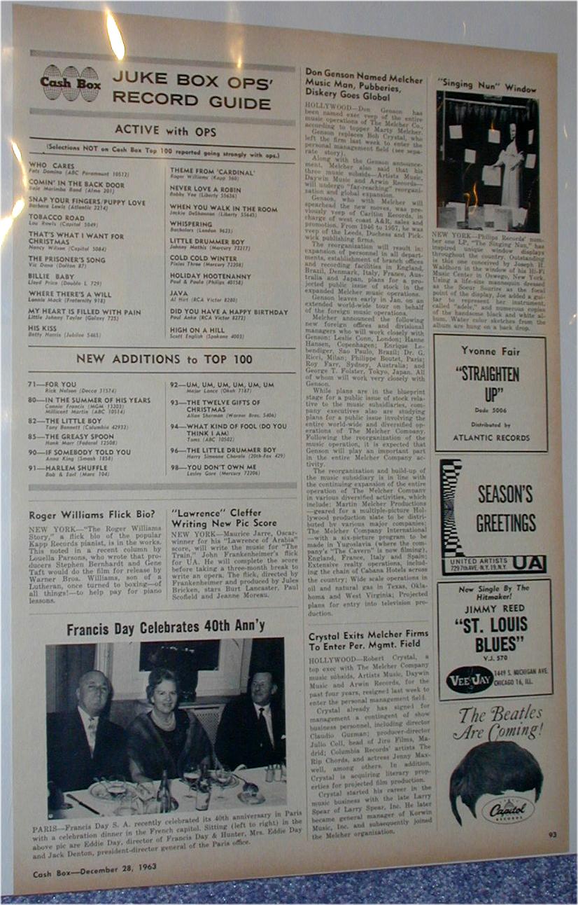 July 18, 1964 - ATCO Records presented a full page ad in Billboard Magazine with 1/2 page promoting the single Ain't She Sweet.