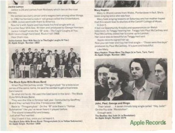 September 14, 1968 - Apple Records presented a full page ad in Billboard Magazine promoting "Our First Four" Apple singles including Hey Jude.