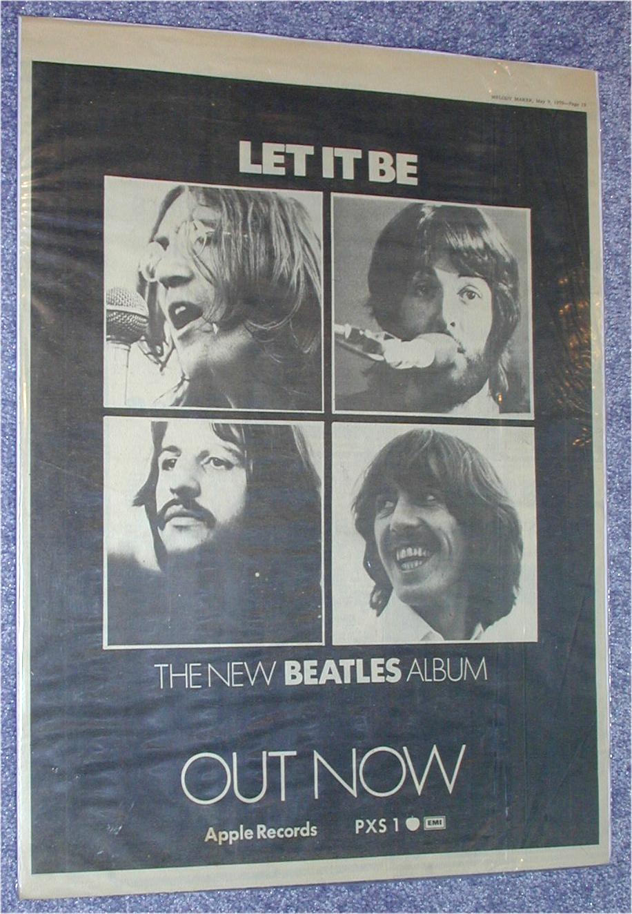 May 9, 1970 - Apple Records presented a full page ad in UK Melody Maker Magazine promoting the new album, Let It Be. This was a B/W advertisement that measures approx. 13" x 18".