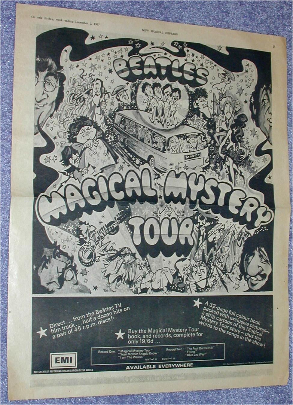 December 2, 1967 - EMI Records in the UK presented a full page ad in New Musical Express Magazine promoting the new EP Magical Mystery Tour.