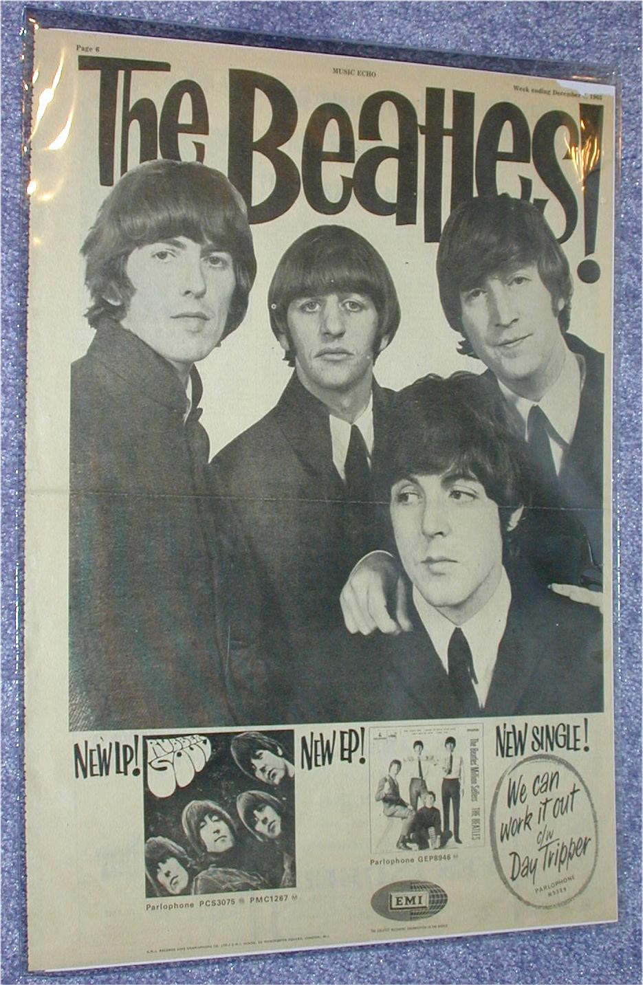 December 2, 1965 - EMI Records in the UK presented a full page ad in Music Echo Magazine promoting the new album Rubber Soul, a new EP and a new single We Can Work it Out.