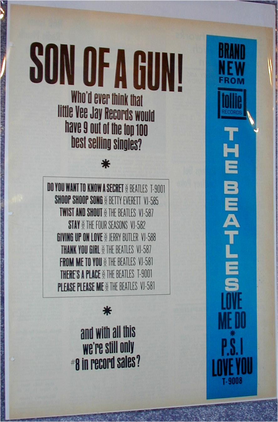 April 25, 1964 - Vee Jay Records presented an ad in Billboard Magazine promoting the singles Twist and Shout, Thank You Girl, From Me To You, There's A Place, Please Please Me, Love Me Do and Do You Want To Know A Secret.