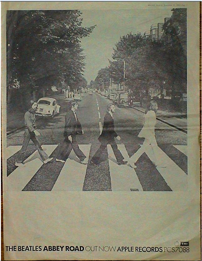 September 27, 1969 - Apple Records presented a full page ad in Melody Maker Magazine promoting the new Beatles LP Abbey Road. This advertisement was in Black & White.