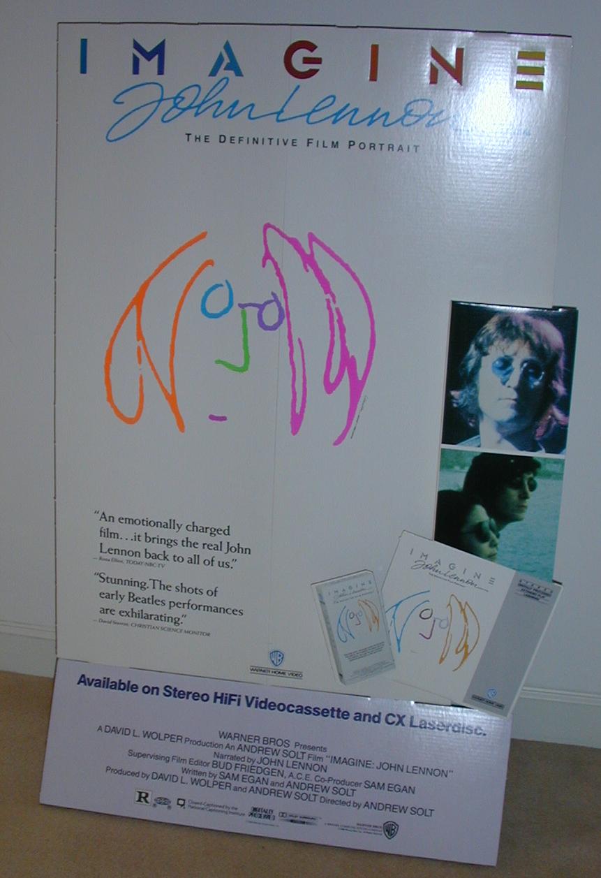Item SL003.  An original 1982 cardboard Store Display for John's Imagine Movie!!!  This item comes with the original shipping box.   Impressive item that stands nearly 5 feet tall.    Excellent condition.  The original shipping box has some writing on it.   Price $129