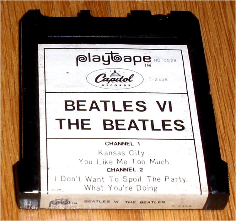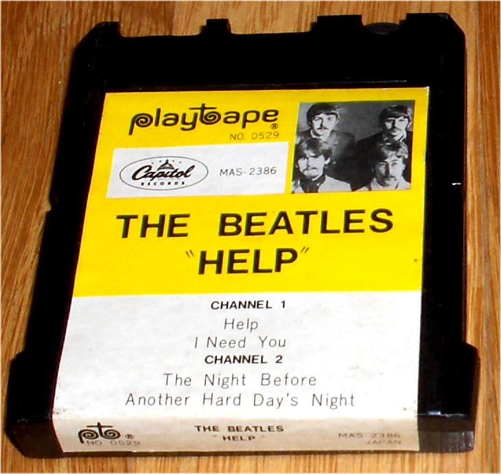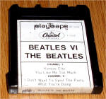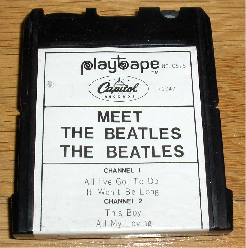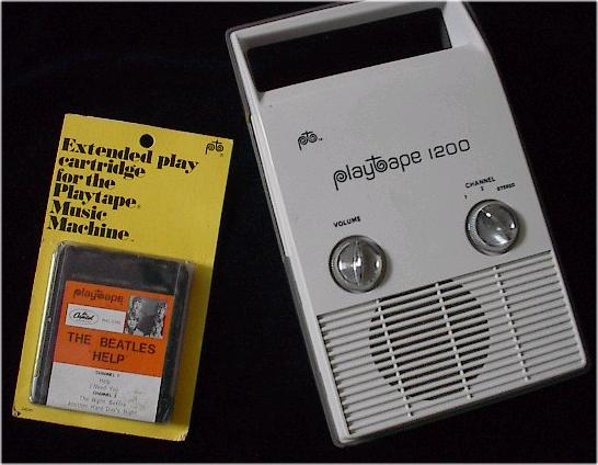 Beatle Playtapes were available in the 1960's by Playtape Inc. These short-lived, 2 track tape cartridges featured 2-4 songs on each small tape. You needed a proprietary tape machine to play these tapes which is shown below. Especially desirable are Beatle Playtapes found sealed on the original backing cards. Many other artists were manufactured too. The first issues of Beatles Playtapes had no photographs on the labels.