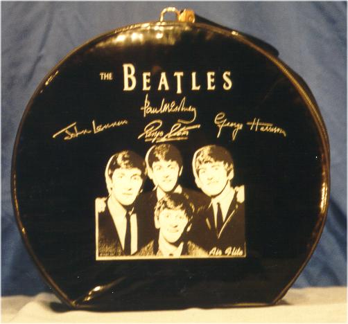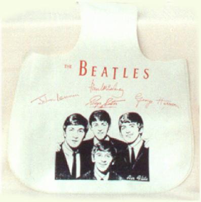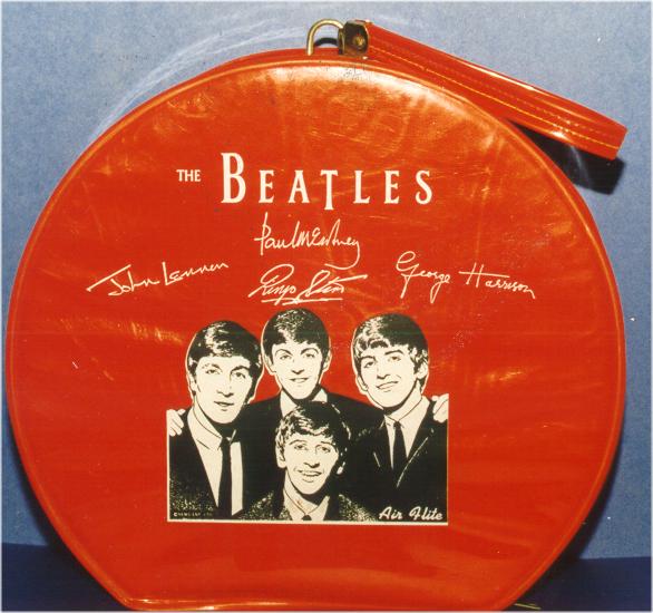 A Beatles Litterbag for your car was mfg in the USA by AirFlite. Made of thick vinyl, this strange item came in either white or red. See also these AirFlite items: Record Carrying Cases, Lunchboxes and Overnight Cases.