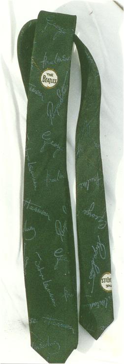The only officially licensed Beatles Necktie manufactured in the 1960s was this 1964 silk tie that came in several different colors with a repeating pattern of Beatles Autographs all over. A very difficult piece to find. On the backside is a sewn-in tag which states the item was copyrighted by NEMS Enterprises Limited.