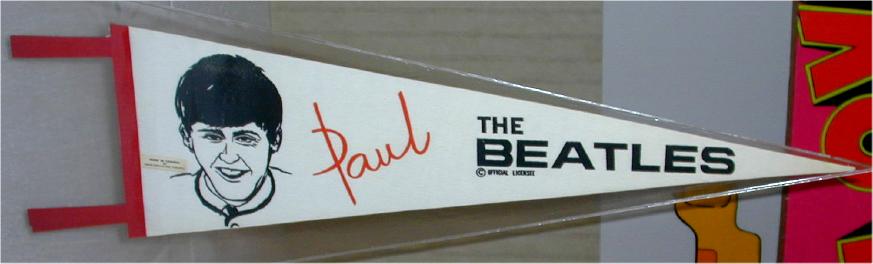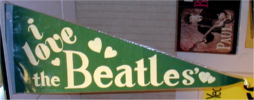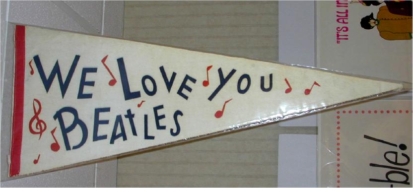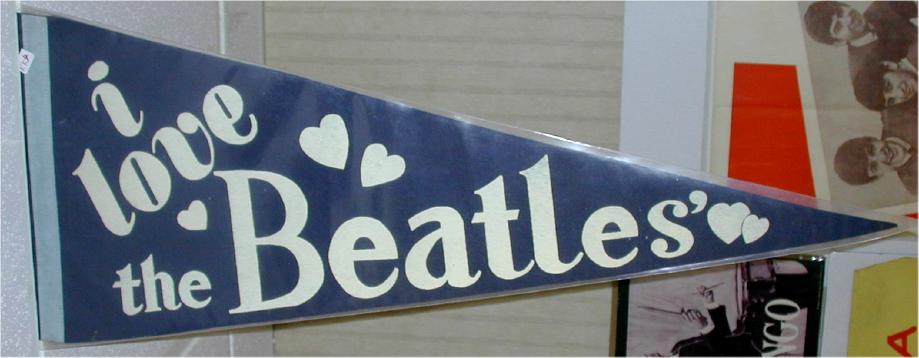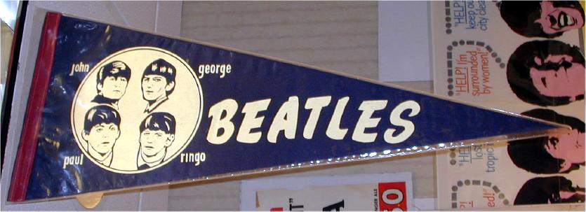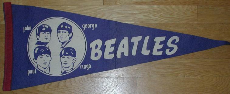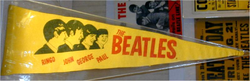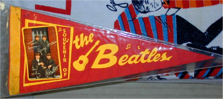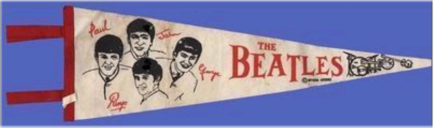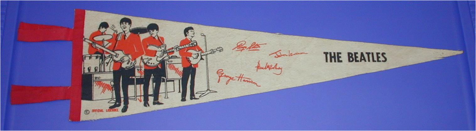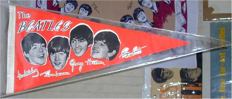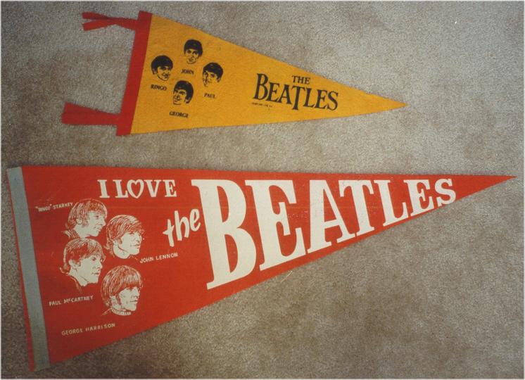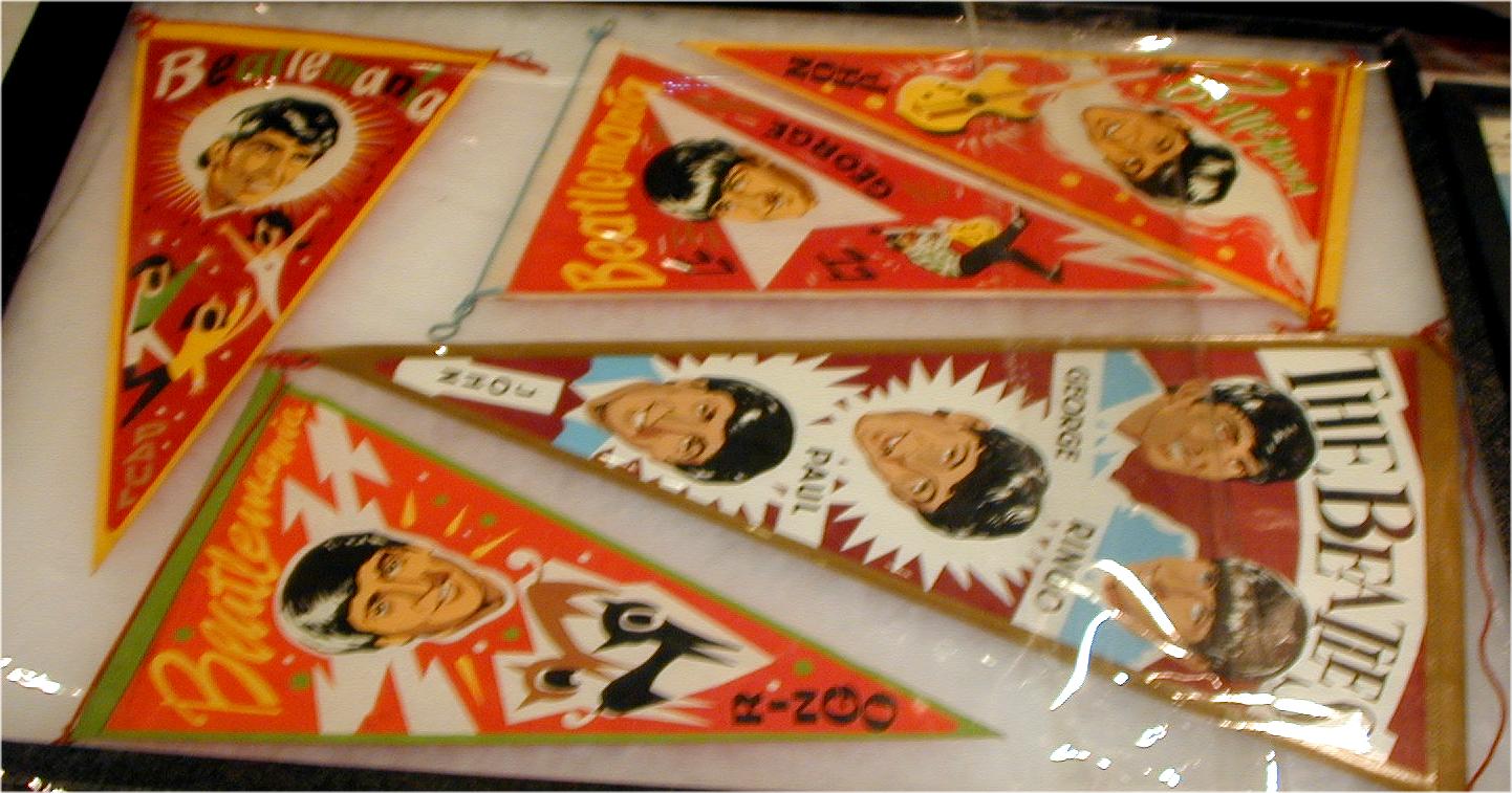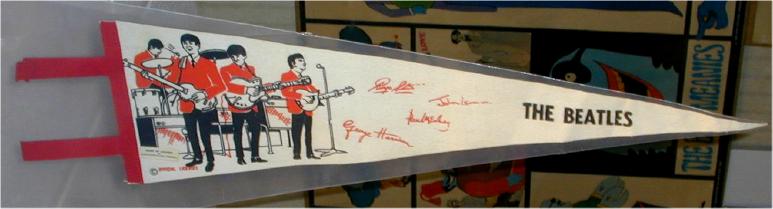Beatle Pennants came in a wide variety of styles and sizes. Some pennants have been counterfeited so beware of fakes. Pennant photographs courtesy of Jeff Augsburger.