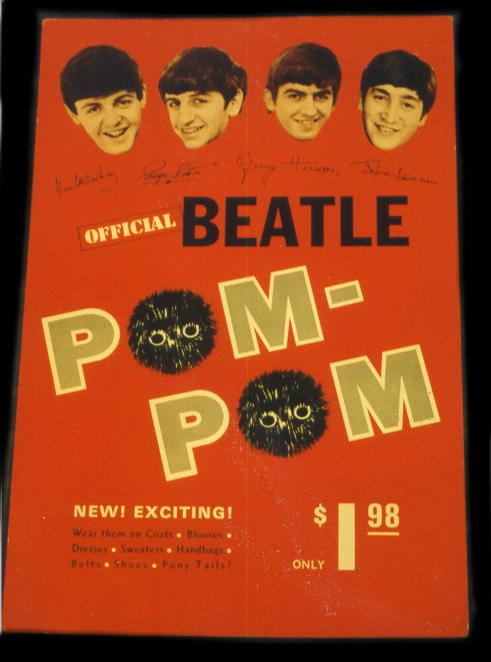 Beatle Pom-Poms were made in the 1960s but the marketing campaign fell way short and these were not widely available. However, these store displays were made and never used. The Pom Pom itself was a black furry little ball with eyes - it had no Beatle markings on it. To date we've only seen 1 actual Pom Pom itself.