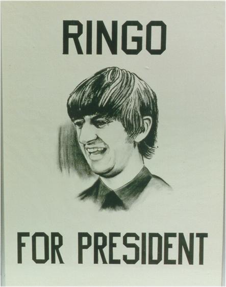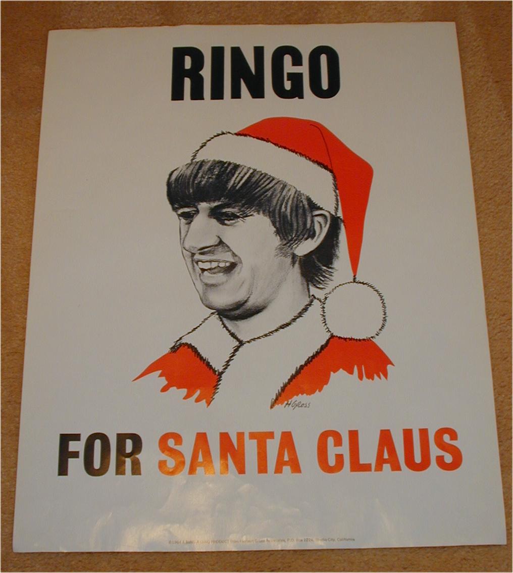 This rare Ringo for President Poster was mfg in late 1964 in the USA. This company also made a rarer Ringo for Santa Claus poster in late 1964 with Ringo dressed in a red Santa hat and coat.