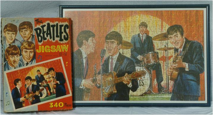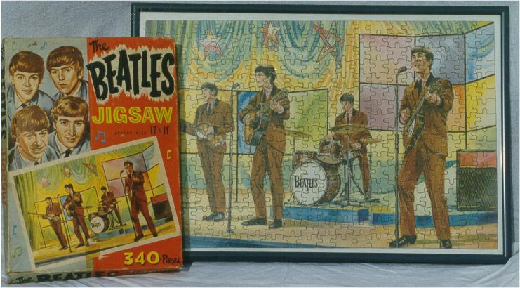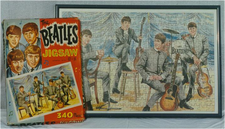 Beatles 340 piece Jigsaw Puzzles were only made in the UK in 1964. Four different boxes were made and each was sealed with a piece of cello-tape. The only official piece of original memorabilia that featured the Cavern Club was one of these puzzles. In 1968, Jaymar of the USA made Yellow Submarine puzzles; see that section for photographs of those puzzles.