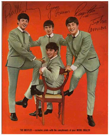 Poster, Mobile Oil Company in Australia issued these give away 12" x 16" Beatle posters in 1964-5.