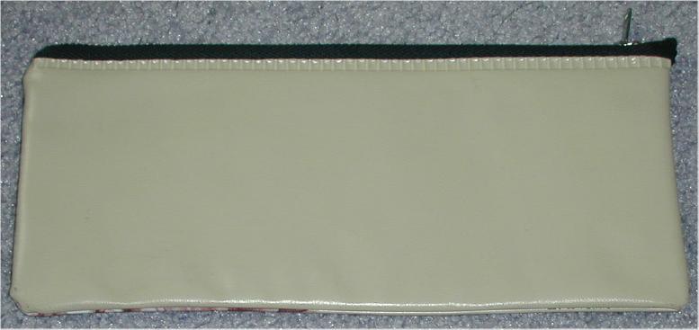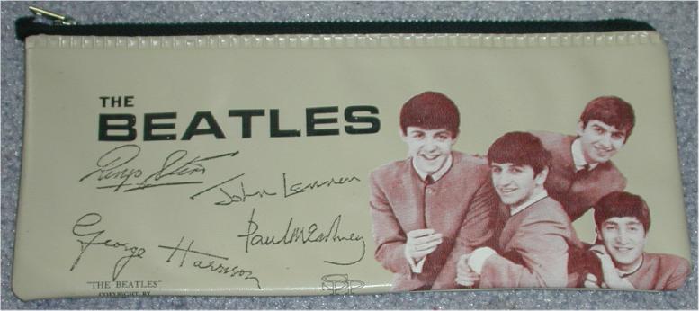 Pencil Case mfg in the USA by DAME. Cloth backed grainy vinyl with zipper on top. Came in a variety of colors. Originals did not have any dates nor mention of NEMS Enterprises Ltd on them. Fakes have smooth vinyl surfaces.