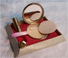 Beatles Lipstick container mfg by KIGU in the UK in early 1964. Beatles compact also shown mfg by the same company. Lipstick is marked KIGU on the bottom while the compact is usually not marked. This set is sometimes found in a rare custom made box which has formed pockets for each item. The set is quite valuable as there have only been a couple of these ever found!!!