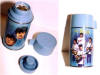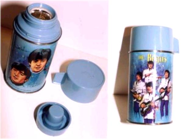 A blue metal Beatles Lunchbox mfg by Alladin Industries in 1965. Item included a matching thermos with blue plastic cap and top. Commands a premium when found in mint condition. Click here for a view of The Yellow Submarine lunchbox.