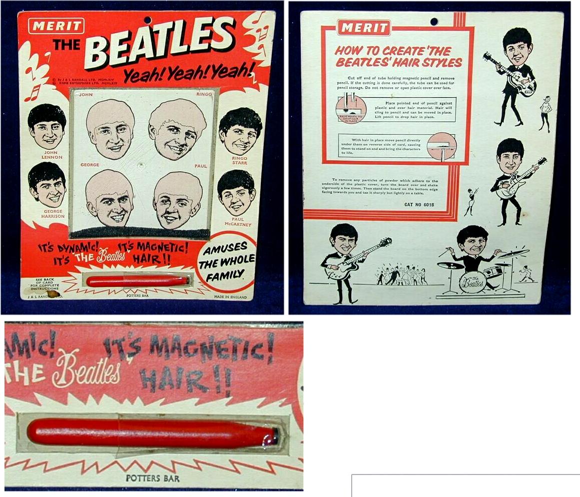 The Magnetic Hair Game Toy mfg in the UK by Merit which also made the Magic Slate Toy shown prior. This item is easily located when compared to the Magic Slate Toy; still a highly desirable piece of originally licensed memorabilia.