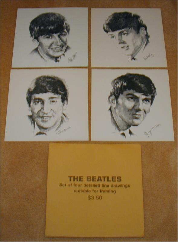 Beatles Line Drawings from 1964 in the original manila envelope. Each measures 12"x12" and is printed on heavy posterboard.