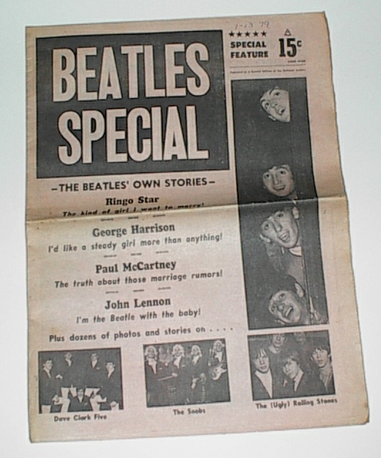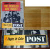 Magazine Promotional Posters. Several Magazine companies issued promotional store displays for their merchandise. There were 2 promo posters issued by POST Magazine for their August 8-15th 1964 issue. The smaller one is printed on thin cardboard and measures 10" x 13.5"; the larger POST magazine promo poster measures in at 22" x 28" and is in full color. Last pictured is a rare UK promotional poster issued for Liverpool Echo Magazine issued in February 1964; this promo store display measures 16" x 22"; also shown is the original Liverpool Echo magazine this rare promo poster was advertising. See also Bookstore Promos for several store promo posters for various 1960's Beatles books.