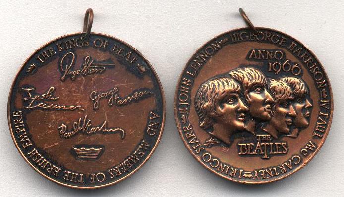 German Medallion mfg in 1966. It was originally issued with either a long matching chain or in an original nicely decorated Beatles cardboard box.