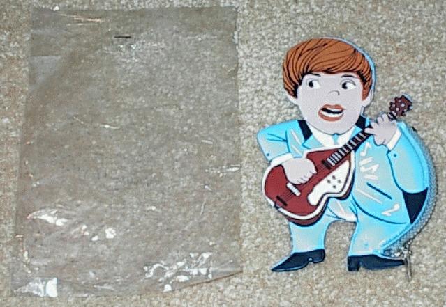 This zippered Pouch was mfg in the USA by Select-o-Pak. This large vinyl pouch only contained a removable insert paper with The Beatles pictured on it, that was placed inside a clear vinyl outer slip on the pouch. Many colors were made and this is not that hard an item to locate. Also several vinyl textures were made.