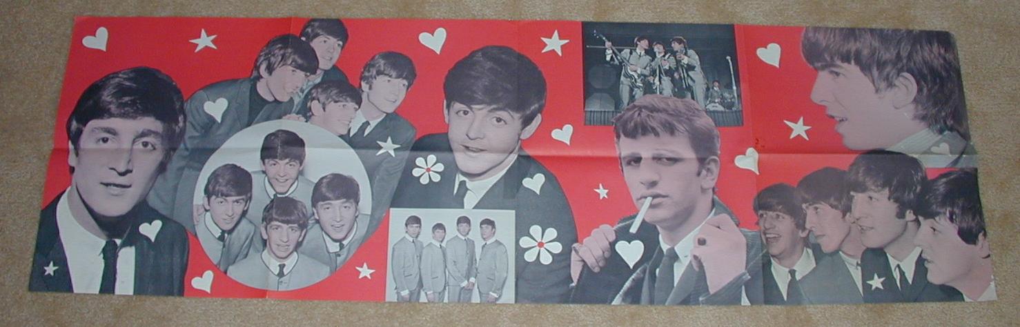 Posters, other miscellaneous Posters from the 1960's. The first poster shown in this grouping was available through mail order in 1964-66 and was billed as a "Life Size Poster of The Beatles" even though it's only approx 5' high. It has their printed autographs on the bottom right corner and says PRINTED IN ENGLAND on the very bottom right corner border. The 3rd poster is 1 of 2 different DELL posters that were sold for 29 cents and are quite wide, nearly 5 feet wide. the next two are in store promotional posters for Hardcover books issued in 1968.
