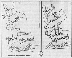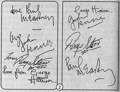 © 2012, 2020 The Beatles Autographs. Used by kind permission. |