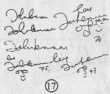 18. The first three are from contracts signed in December 1974. The first is dated December 6 and the next two are dated December 29. The differences are fairly evident, especially interesting for a short period. Bottom right: a check signed in February 1976. Right, top to bottom: three signatures signed May 16, 17 and 18, 1975. Bottom: a check signed in February 1978. A very lazy signature. Ones that look similar have been called "secretarials", although it is not so. No checks were signed by secretaries.