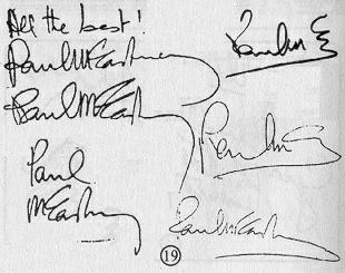 19. McCartney's solo-era signature has undergone some changes, but certainly not as drastic as Lennon's. Top: "All the best!" from 1976. Middle: 1978. Bottom: 1986. Right, top and middle: two rushed examples circa 1990. McCartney doesn't always give a full signature. Bottom right: a nice full, clean example from 1990.