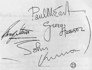 15. There are very few examples of all four signatures from 1968 or 1969. Rare indeed, and almost certainly obtained by someone hanging outside of Apple Headquarters or EMI Abbey Road Studios.