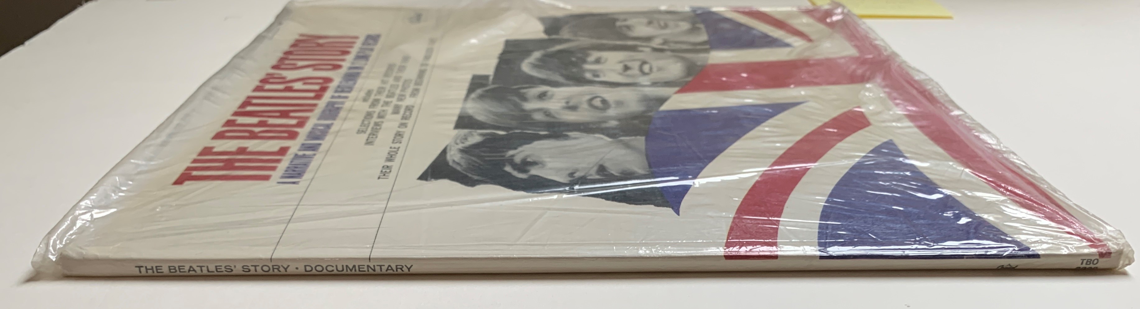 in SHRINKWRAP.Offered is The BEATLES STORY album released by the Capitol Records at Christmas Time 1964. Mono West Coast Copy. The shrinkwrap is a loose fitting plastic baggy type covering. The jacket underneath is in MINT condition! Includes both original turquoise colored Capitol Records Inner Sleeves.