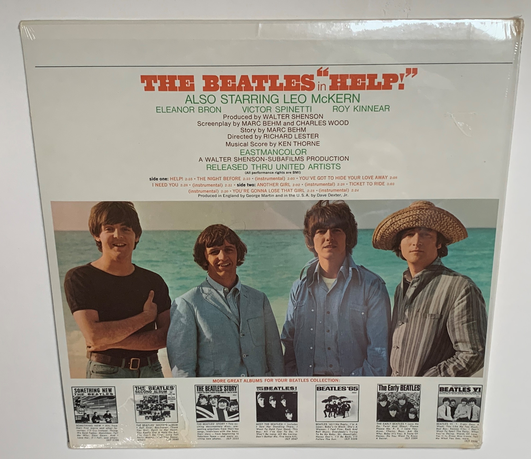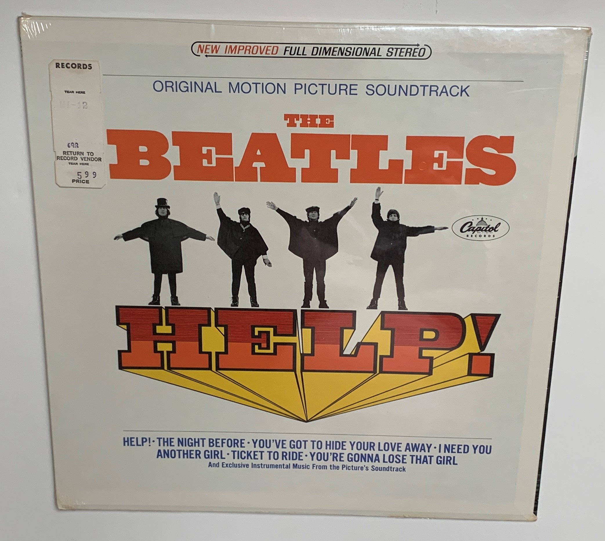 STILL SEALED in SHRINKWRAP.Offered is The BEATLES HELP! album released by the Capitol Records Summer 1965. Stereo Copy Still Sealed with cardboard price sticker tag attached to front of shrinkwrap. There is at least one breathe hole on the front cover in the shrinkwrap. The shrinkwrap is tight except for 2 small shrink tears on the back cover, one of them near the image of the Beatles Second Album and another near the image of the Beatles VI album.